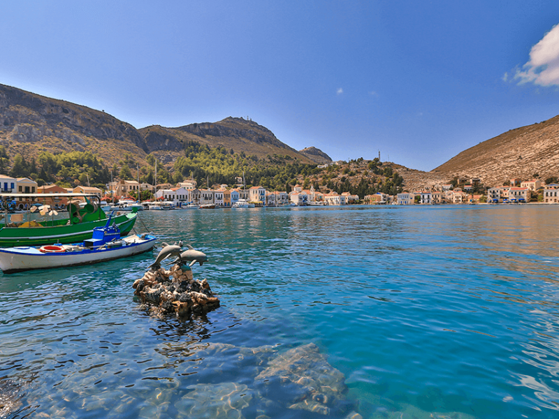 You will see different sanctuaries with the Meis Greek Island Tour. You can visit the historical buildings and surrounding places by wandering around the clean streets of the island of Meis on our trip, which starts with our boat departing from Kaş port at 10.00 in the morning to Meis, the Greek island closest to Turkish territorial waters (3 miles). You can have a nice lunch at the cafes and fish restaurants on the beach, and in the rest of your time, you can take a ride on a small boat that you can rent to the Blue Cave. You can spend your time swimming at the small beach in Meis.
